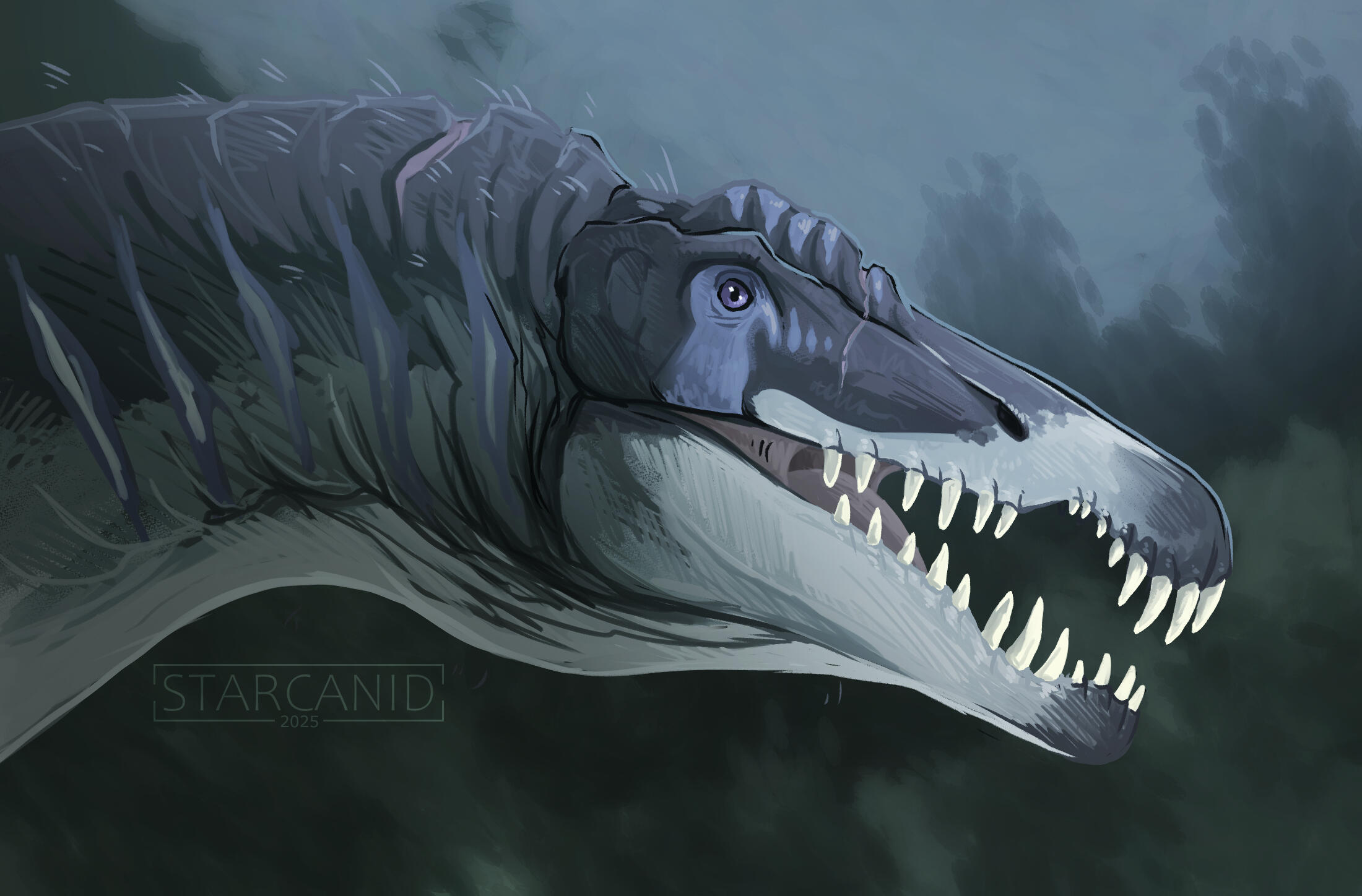 > I draw: feral animals and creatures, dragons, prehistoric creatures, blood, minimal to medium gore. minimal body horrorx I won't do: humans and humanoids, anthros, NSFW, extreme gore, anything hateful or inappropriate